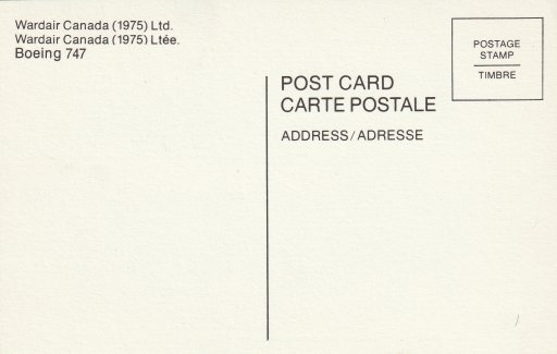 Webshop » Airline Issue postcards » Airline issue postcard - Wardair Canada Boeing 747