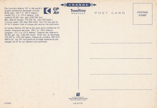 Airline issue postcard - CP Air Boeing 747