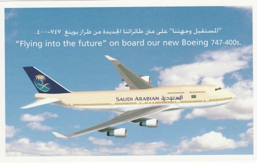 Airline issue postcard - Saudia Saudi Arabian Airlines Boeing 747-400