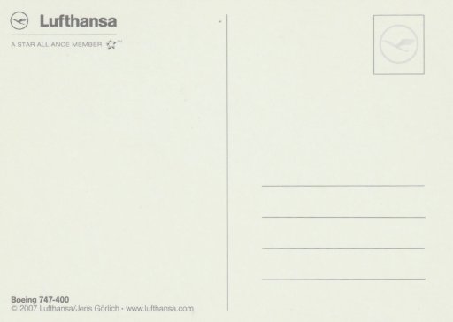 Airline issue postcard - Lufthansa Boeing 747-400