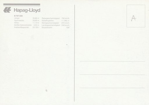 Airline issue postcard - Hapag Lloyd Boeing 737-500